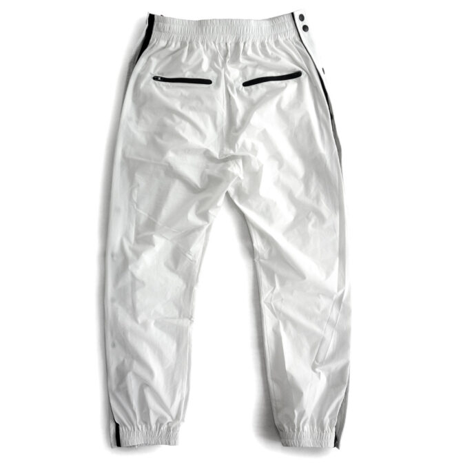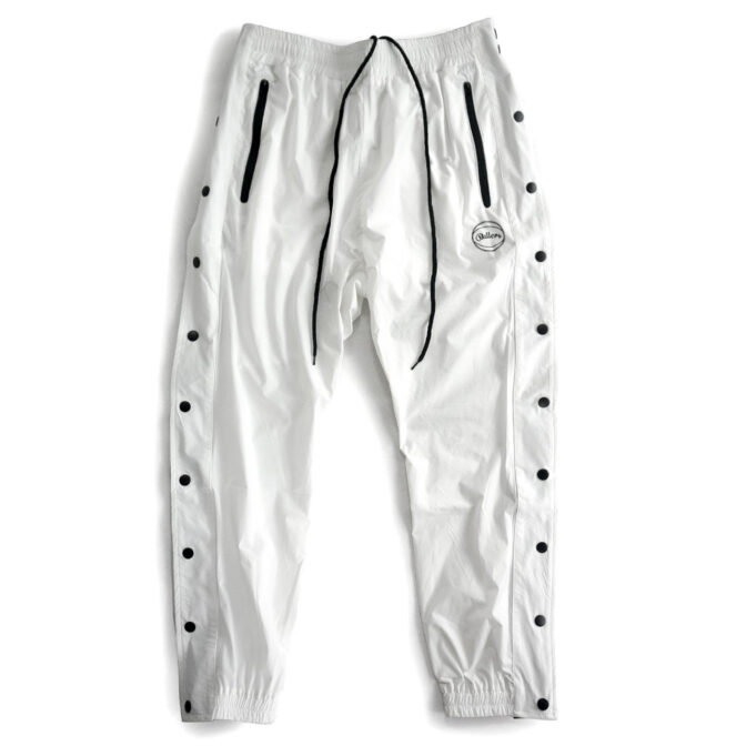 ややハリのある軽量ストレッチナイロンを使用したサイドボタンパンツです。伸縮性のある生地にサイドボタンを施し、脱着が楽な仕様となっています。サイドは全開閉可能なため、ウォームアップパンツとしても使いやすい1着となっています。