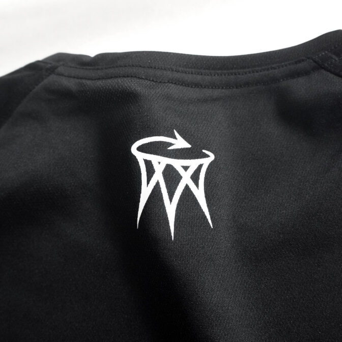 速乾性に優れた素材を使い、サラッとした着心地の1着となっています。ラグランスリーブで動きやすくラウンドカットのヘムラインがシンプルなコーディネートでも一味違った雰囲気を演出します。ボールがリングに吸い込まれるイメージのプリントを右袖にデザインされたシンプルで合わせやすい1着。