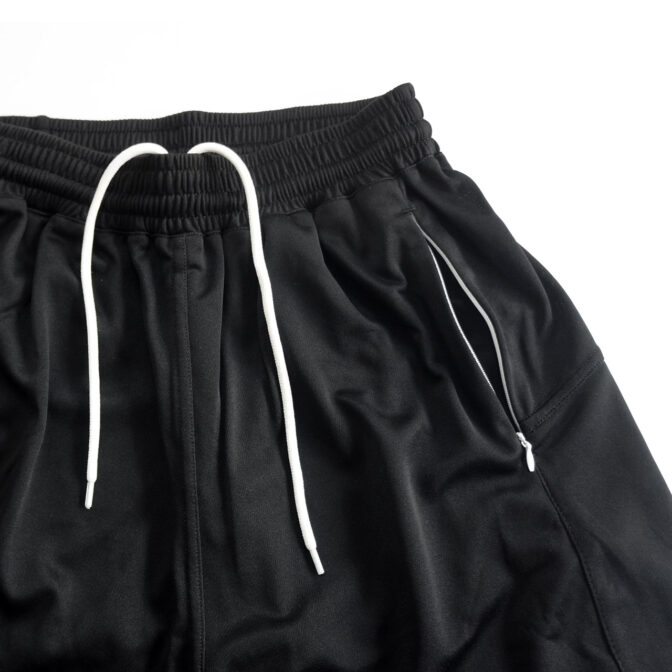柔らかい素材感で速乾性に優れた1着。普段の練習着としても部屋での着用でも街着でもお使いいただける素材感です。動きやすさを追求した1着でバスケットをする際はもちろんタウンユースにもお使いいただけるシンプルなデザインとなっています。後ろの丈を少し長くラウンドさせており横から見たときのシルエットが可愛いパンツとなっています。ウエストはゴムとドローコードで調節可能です。